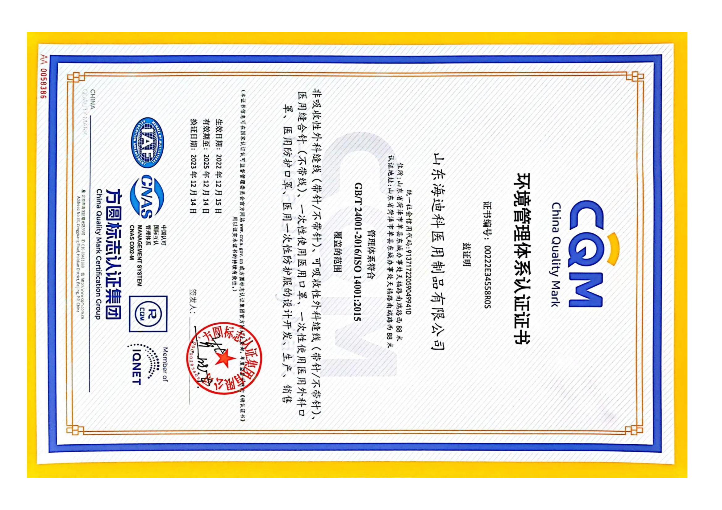 • 海迪科醫(yī)療器械生產(chǎn)許可證